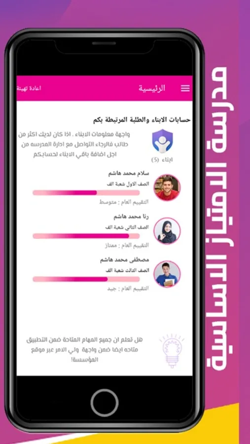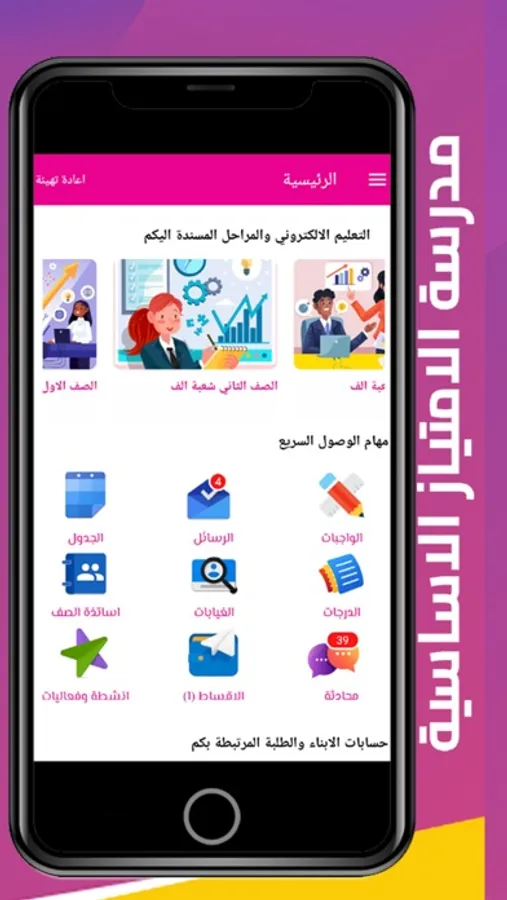 مدارس الامتياز الاساسية الاهلية للبنات تقدم لكم تطبيق الادارة الذكية المدرسية. التطبيق الافضل لإدارة التعليم في العراق أصبح بخدمتكم الان عبر التواصل مع أفضل الجهات التقنية المقدمة للخدمة. لان هدفنا رفع مستوى التعليم في العراق لنصل مراحل متطورة توازي الدول الأوربي كانت جهود المؤسسة من اجل تقديم هذا الحل التقني. نحو تعليم أفضل وسنة تعليمية حلوة.