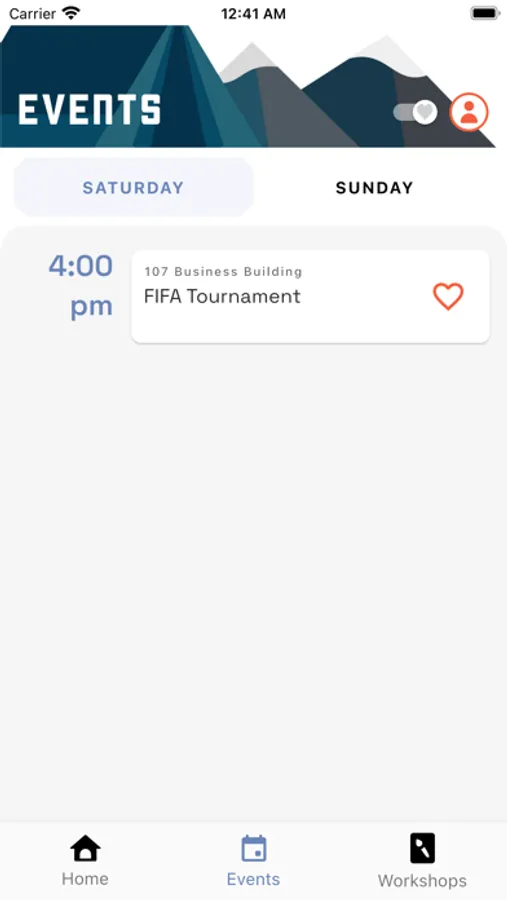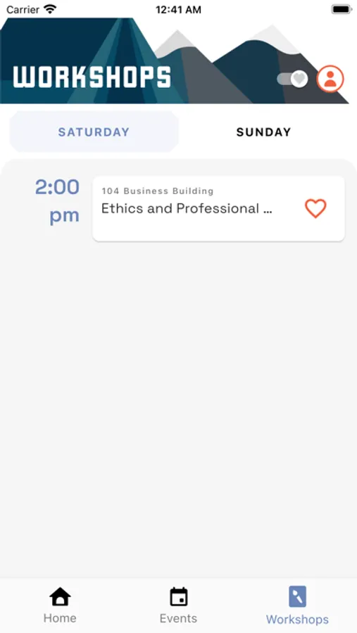 Sign in to find quick info on the home screen and upcoming events and workshops! Star events/workshops to get notifications for them!