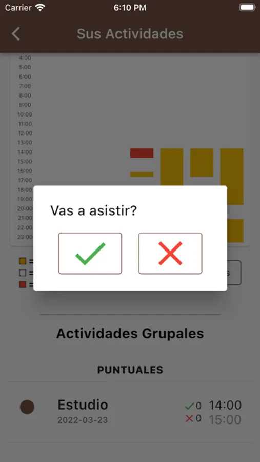 Una vez obtenida la disponibilidad grupal, se podrán hacer búsquedas de horarios y crear actividades grupales, de las cuales se les notificara a los integrantes del grupo, y podrán confirmar asistencia. Esperamos que esto facilite el proceso de encontrar un horario comun.