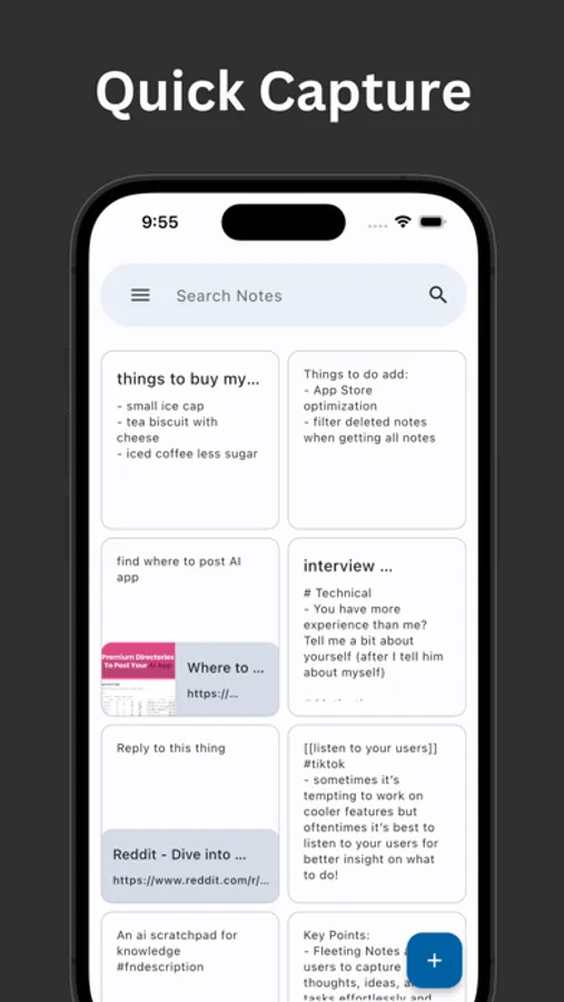 Fleeting Notes is the ultimate solution for quick, efficient, and secure note-taking. Whether you're on your phone, tablet, or browsing the web, capture your thoughts in an instant, keep them organized and accessible, all while maintaining control over your data.