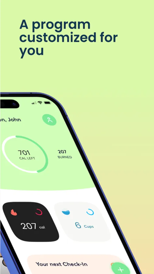 Stay on course with regular check-ins that display your expected weight loss and recommend daily caloric intake for optimal results.