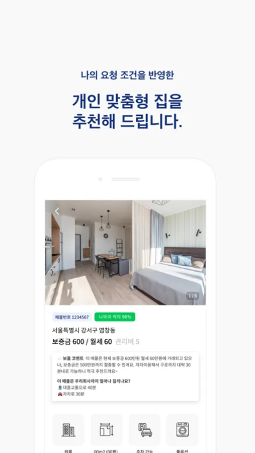 앱 내에서 회사로부터 사용 승인을 받은 후, 입주 희망 조건을 기입하면 보홈이 며칠내로 맞춤형 집 리스트를 전달해드립니다.
