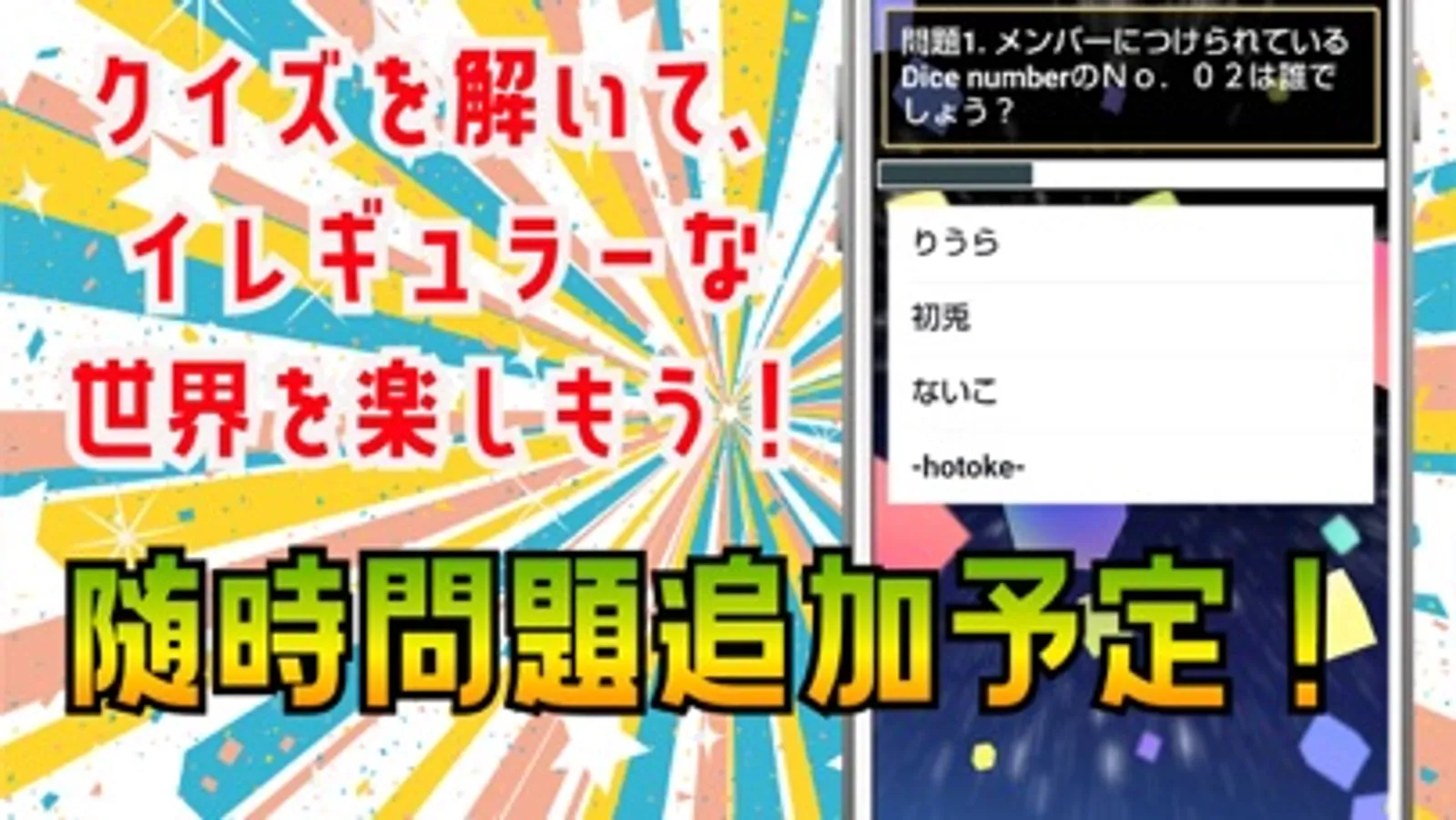 大人気グループ 「いれいす(イレギュラーダイス・irregular dice) 」に関するクイズアプリです。