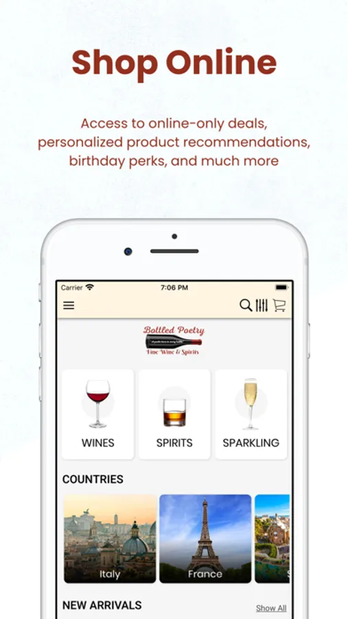 With the App you can browse for the wines & spirits available in the store, and also order a delivery or pickup.