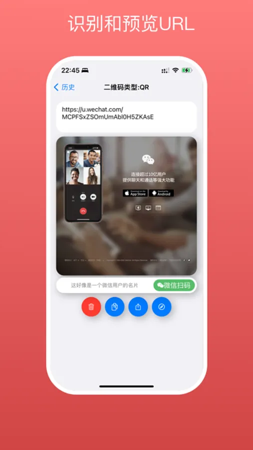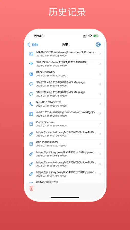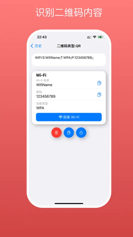 Support QR code content recognition: Wi-Fi, contacts, emails, phone calls, text messages and more.