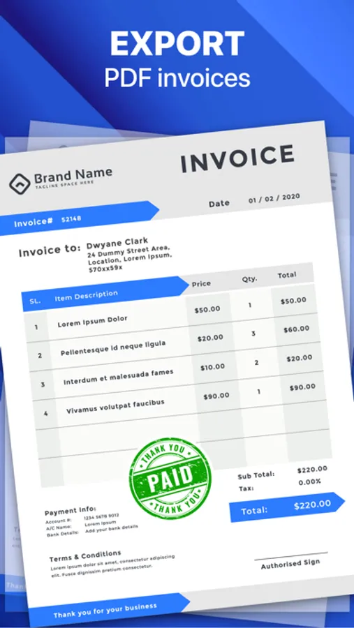 [Name of App] is not just an invoice maker; it also functions as a point of sale (POS) system, enabling you to accept payments directly within the app. Our app supports payment through PayPal, making it easy for your customers to pay you online.