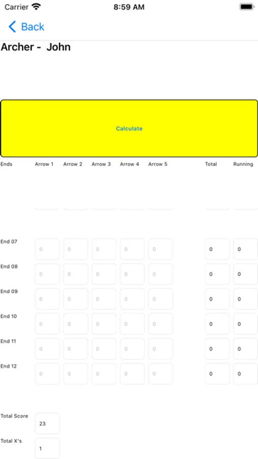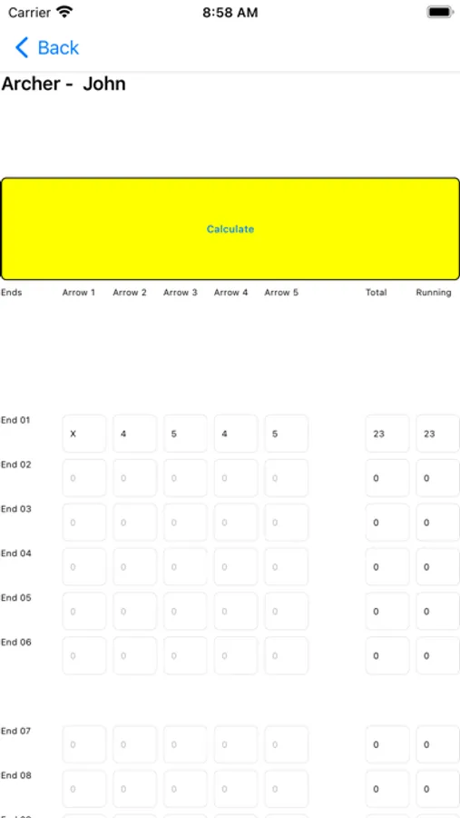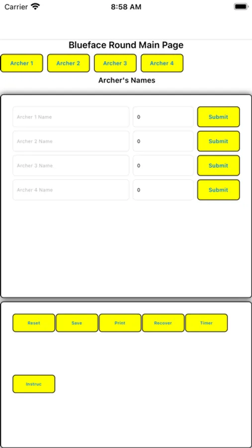 The Blue face round is shot with either a 40 centimeter or 5 spot blue target, with a white center. It consists of 5 arrows in each of 12 ends, for a total of 60 arrows. Each end has a 4-minute time limit. The maximum possible score is 300 points. An "X" is also counted as they act as a tie breaker. This application provides the user with the capability to track the scores of up to 4 archers shooting a Blue Face round. It has the ability to save rounds and recover them for review. Also included are a Printing function (using a PDF format) and a timer.