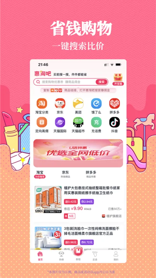 领取淘宝京东等电商平台优惠券,让购物更省钱