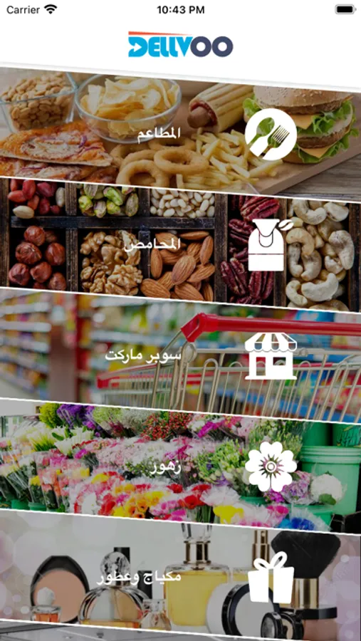 تطبيق توصيل أكل & مواد غذائية & ألبسة & مكياج وعطور & الكترونيات & ورد وهدايا.