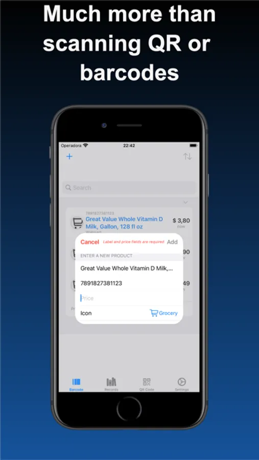 • For you to get to know the app, it is allowed to save only one product and a QR code capture.