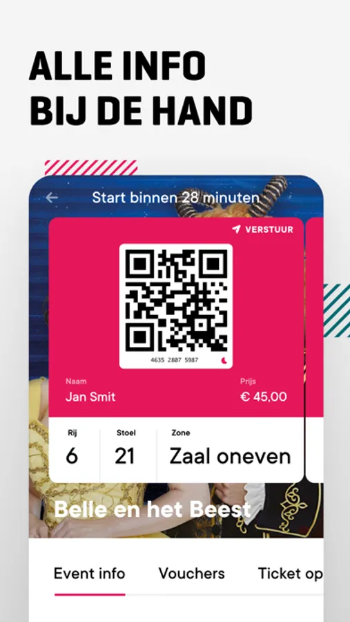 Al je tickets zijn automatisch beschikbaar in de app, zelfs als je offline bent. Je hoeft geen tickets meer te printen, toon eenvoudigweg je telefoon aan de ingang!