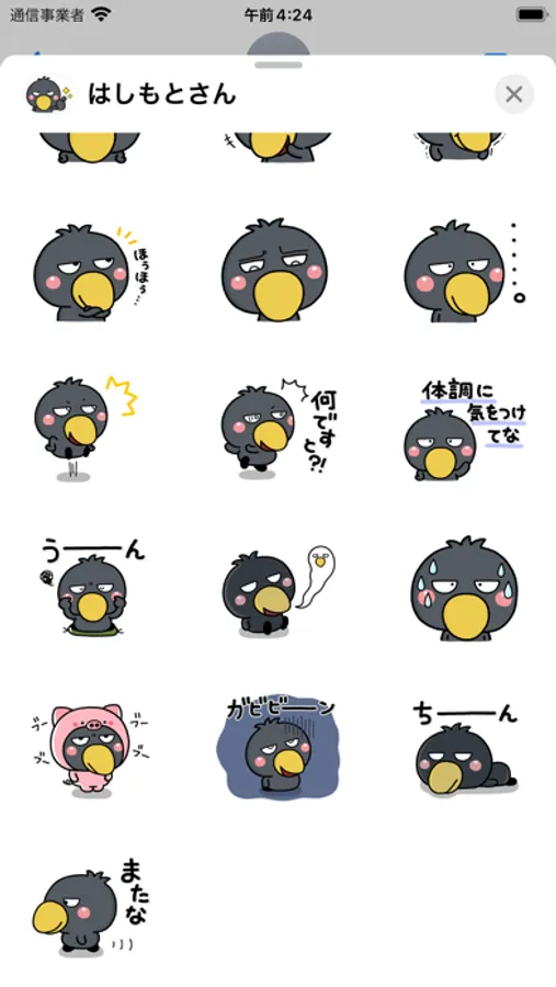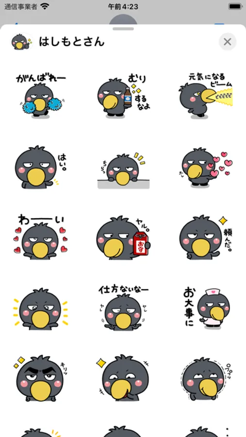 4コマ漫画でみんなのお世話役。ハシビロコウのはしもとさんの完全新作ステッカーです。使いやすい大人の敬語ステッカーです。【作:いしいともこ】