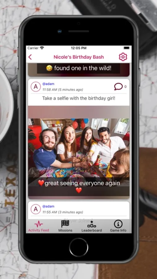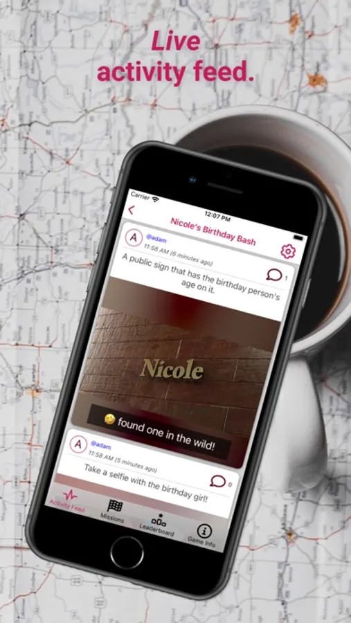 Photo/Video: Players complete this mission type by submitting a photo or video that meets the mission’s criteria. These must be taken in the moment, so no cheating by using old pictures or internet searches. Once a player submits a photo or video, all other players are notified and can see the submission in a real-time activity feed.