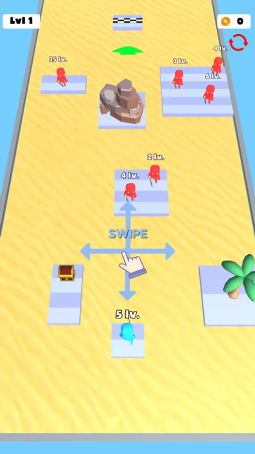 To level up, kill low level enemies and defeat them all.