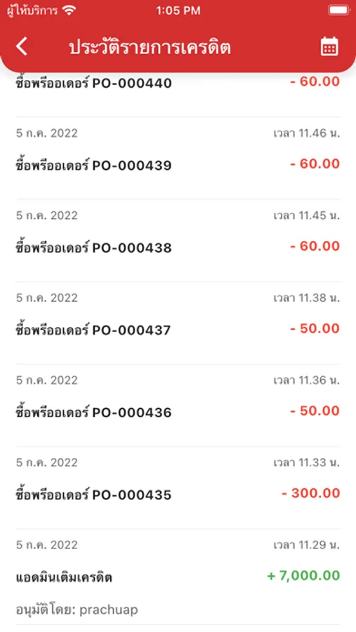 - แสดงจำนวนเครดิตคงเหลือที่มี