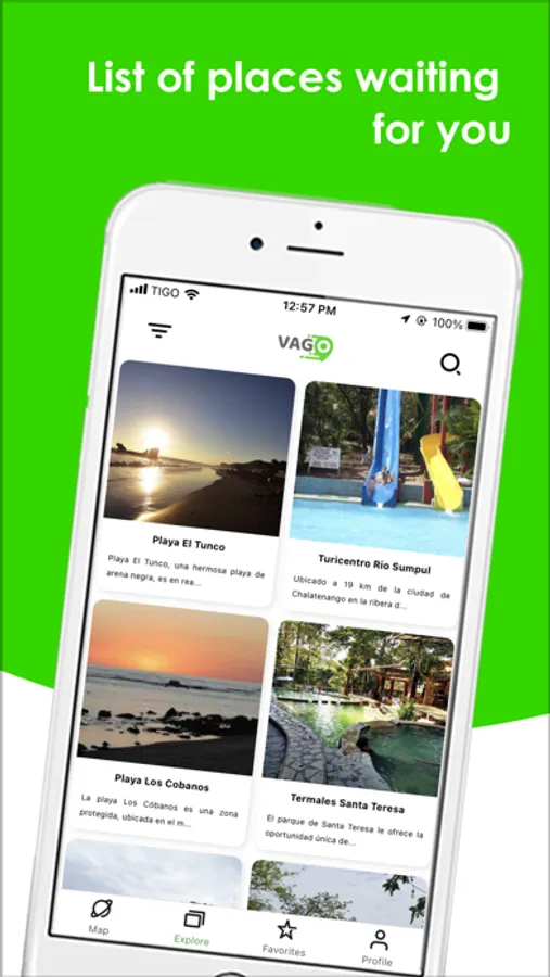 Vago is a mobile application to see on a map in real time places and tourist sites throughout the country, you can see the details of tourist sites, photos, information, with the options of how to get there through integration with Waze and Google Maps.