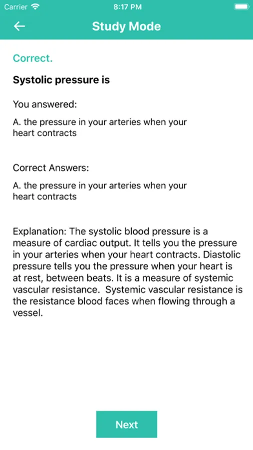 The app has 2 modes: study mode and flashcard mode. In study mode, the exam will not be timed and you will see the answer and explanation right after answering a question. In flashcard mode, you will be able to go through flashcards as well as grade yourself.