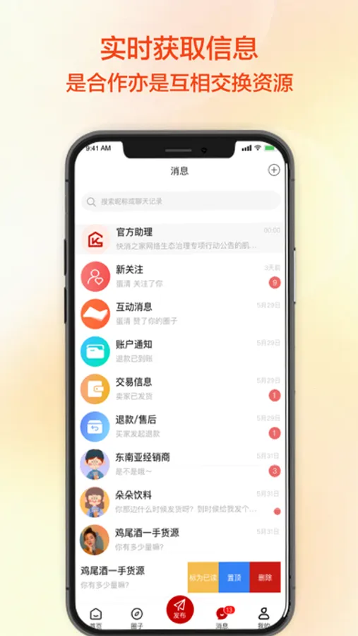 平台汇聚全国一手快消品货源,海量优质品牌。厂家和经销商、代理商可以0成本直接对接,无中间商赚差价,客源精准,高效成交。支持文字、图片、语音、视频、电话多种高效沟通方式,买货卖货实时询单。订单交易由三方银行全程监管,支持保证金、定金等多种交易方式。
