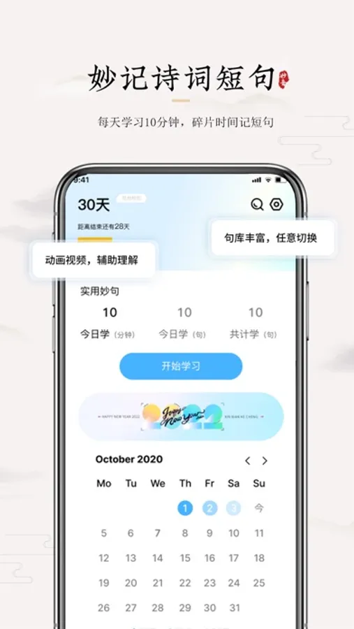古诗词大全:每天10分钟学习《人生何处不成诗》《6/30/360天经典短句体验诗词笃局》扩充句库。