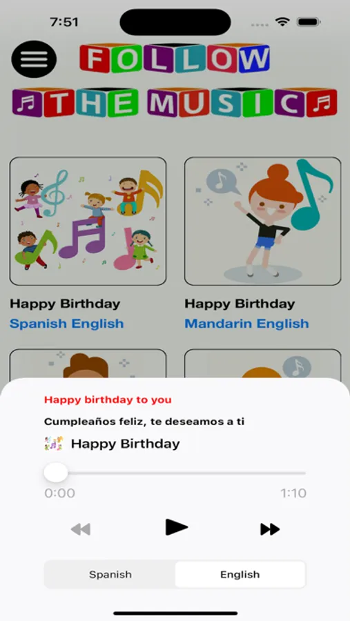 This app is a great way to learn a new language through music. Listen to multiple songs in multiple languages with lyrics on screen. You will learn a new language without even trying.