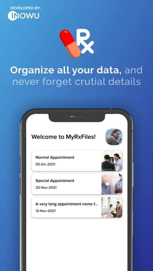 MyRxFiles is an app that helps you keep organized of all your prescribed and over-the-counter medications, future doctor/specialist appointments, medical conditions, lab results, imaging results, and much more to come all in one application.