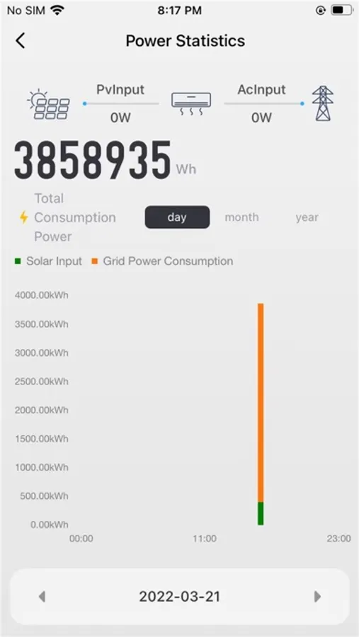 4. View power consumption: separate power consumption is visible live from solar panels and also from AC power, history of power consumption is also available in easy to view graphs
