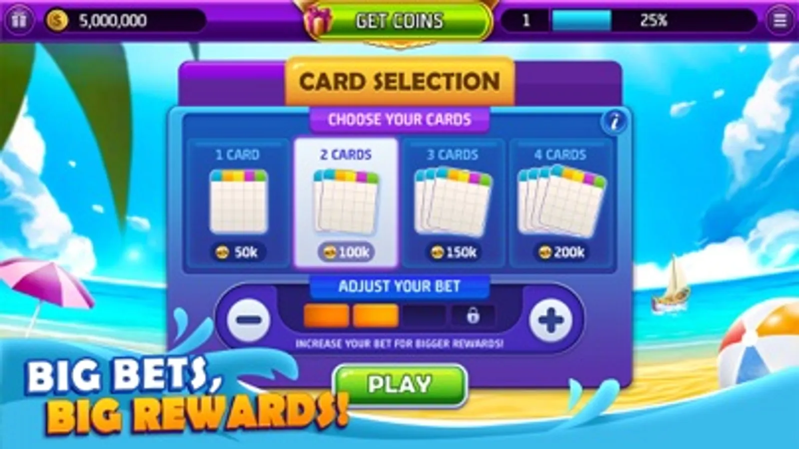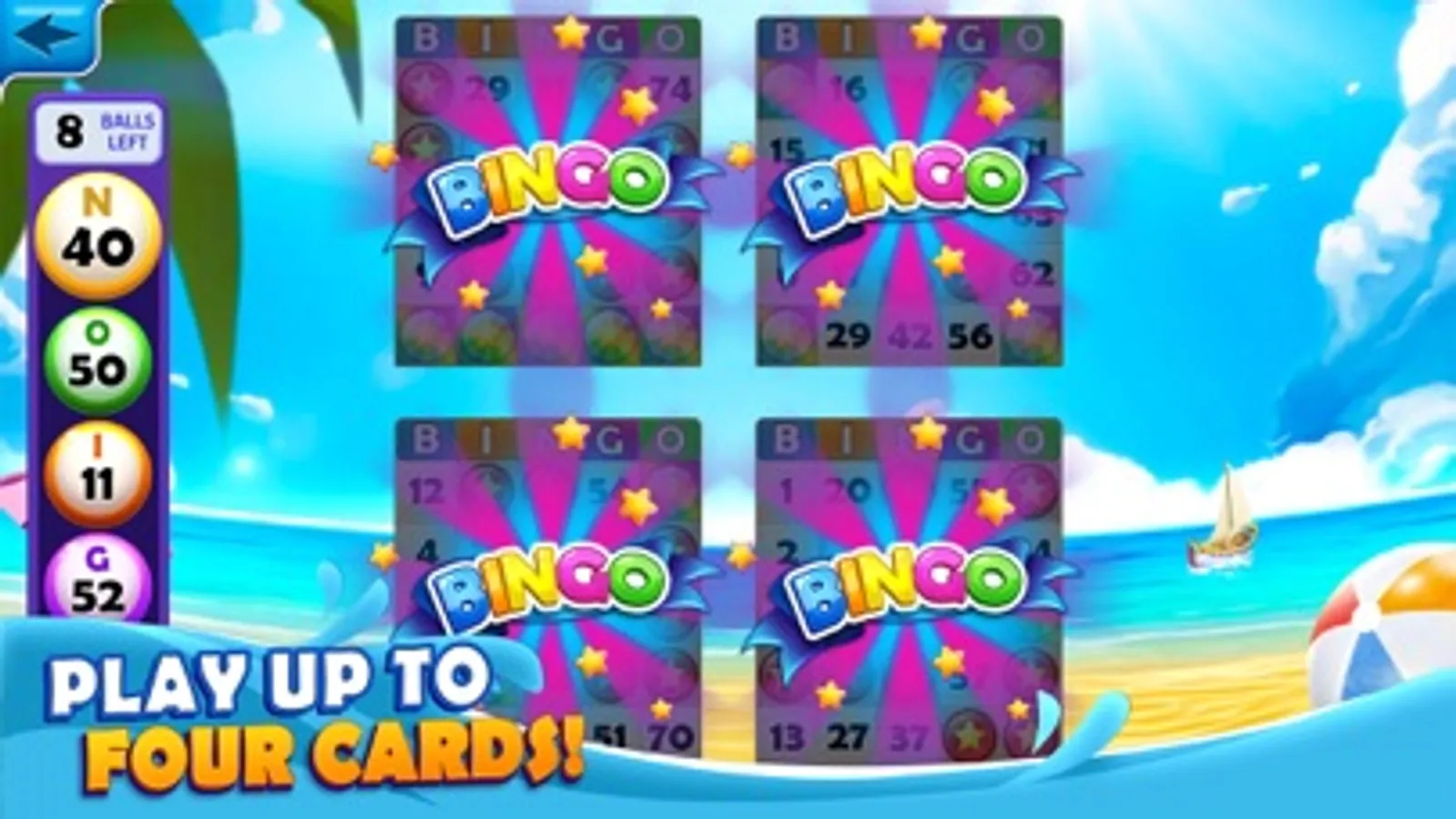 Play up to 4 bingo cards at once.