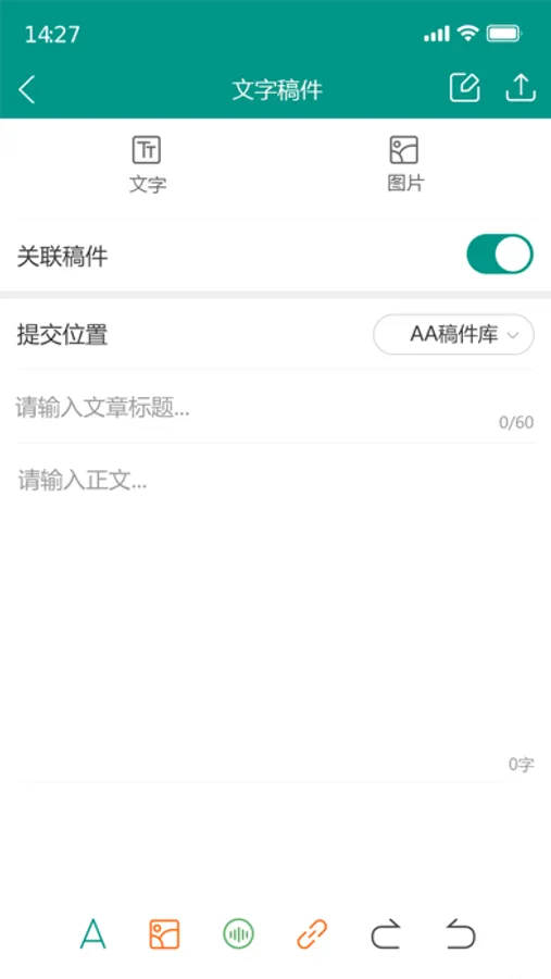 2、提供文字稿、图片稿、关联稿的移动投稿功能;