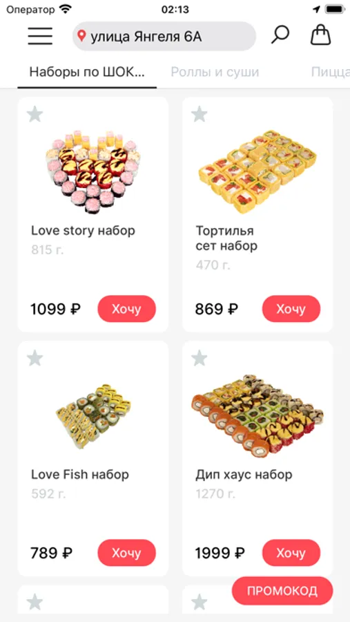 В нашем приложении тебя ждет большой выбор пиццы, роллов и суши.