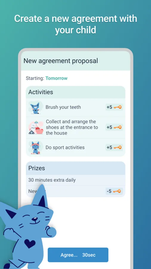 Agreement: The app’s mechanism is designed to foster understanding and collaboration between parents and their children by providing a negotiated agreement. In today's fast-paced world, it's crucial to establish open communication channels and shared responsibilities within the family unit. Tutorina serves as a digital platform that empowers families to create agreements, set expectations and benefits, and build trust in a modern and convenient way.