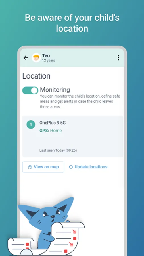 Localization: Tutorina offers real-time tracking of the device used by the child. allowing parents to know their child's whereabouts when they are outside. The localization feature enables setting up virtual boundaries, and parents receive notifications whenever their child enters or exits defined locations. This ensures added safety and peace of mind for parents.