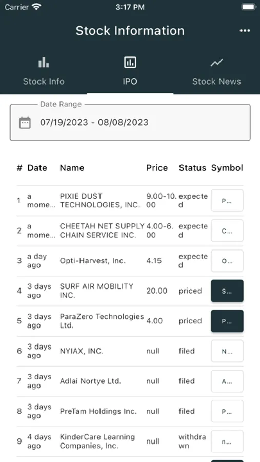 * Latest Information with Stock description, Industry, PE Ratio and much more!