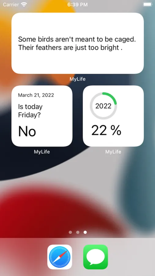 MyLife contains several widgets: Year progress, Is today Friday and Maxim.