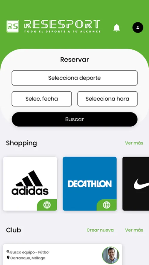 También, a través de la pestaña de Club ReseSport podrás interactuar de manera online, mediante chat interno, con tus amigos u otros usuarios para así coordinar futuros partidos o practicar el deporte que más te guste.