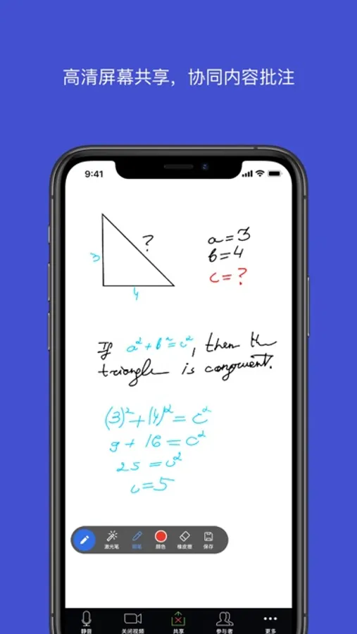 随时随地发起会议、加入会议、实时屏幕共享、文档共享、跨平台即时通讯。