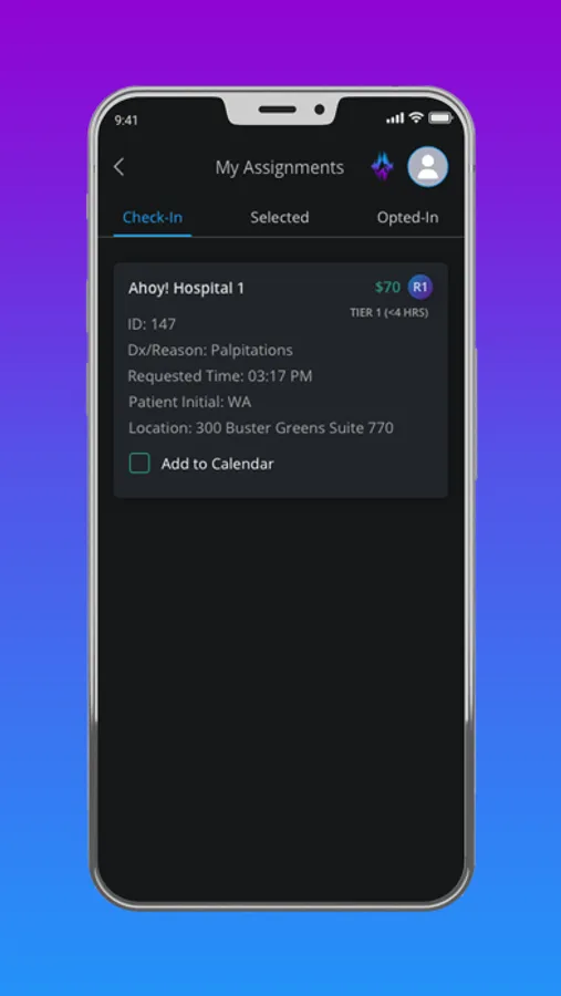 - View assignments in real time as they are needed by the hospital or requesting physician