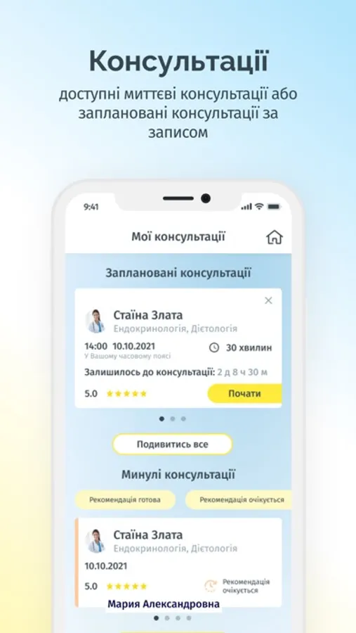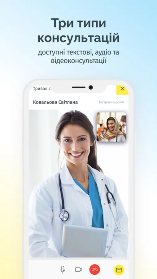 Для отримання медичної допомоги вам необхідно пройти швидку реєстрацію та заповнити первинний анамнез. Консультацію можна отримати за допомоги відео та аудіо дзвінка або чата, якщо інтернет з'єднання занадто слабке.