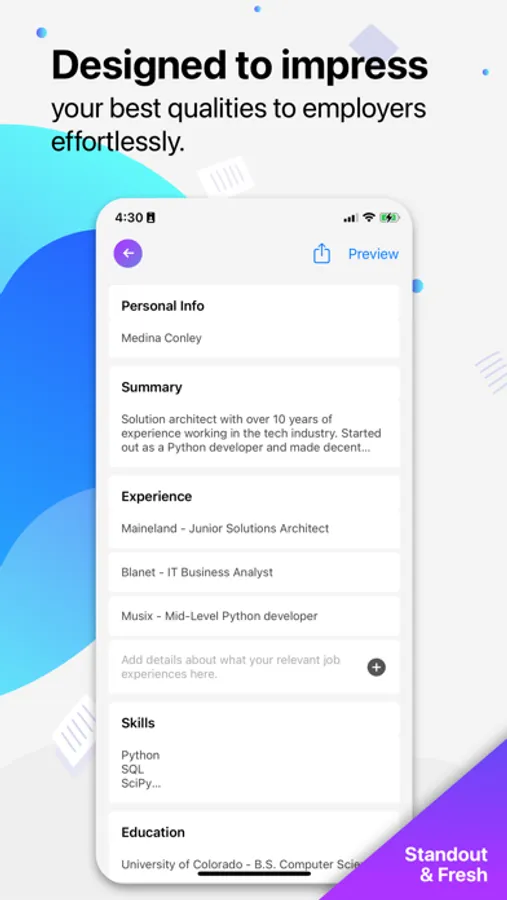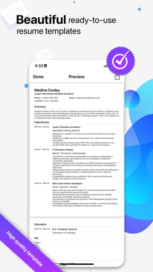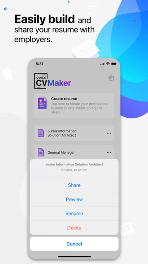 The simplest and easiest app to build a professional CV/Resume for your job applications. Start getting your CV/Resumes noticed!