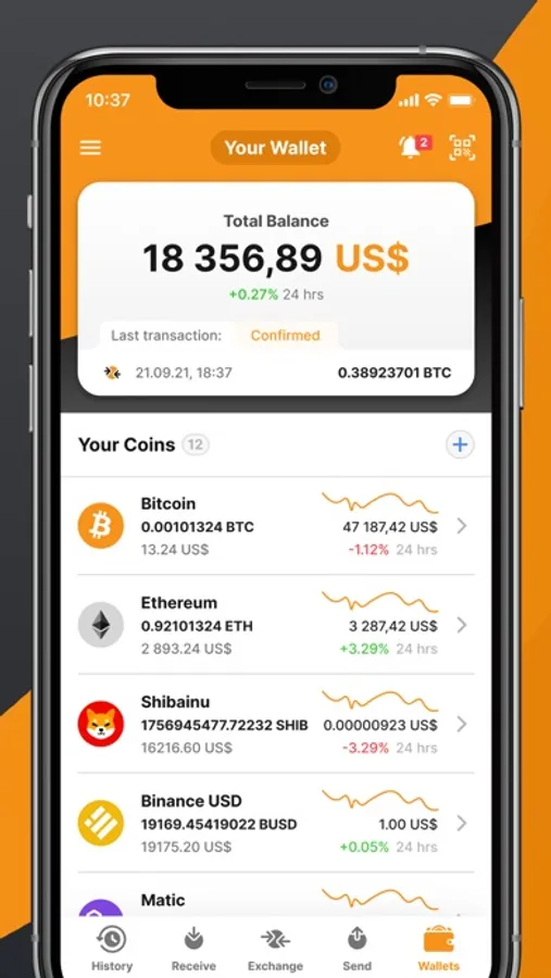 · All cryptos in one place: Bitcoin (BTC), Ethereum (ETH), Tether (USDT), BNB, USDC, Solana (SOL), Polygon (MATIC), CTC, BUSD, SHIB, LINK, LDO, QNT, APE, SAND, AAVE, MANA, AXS, CHZ, PEPE, DAI, UNI, etc;