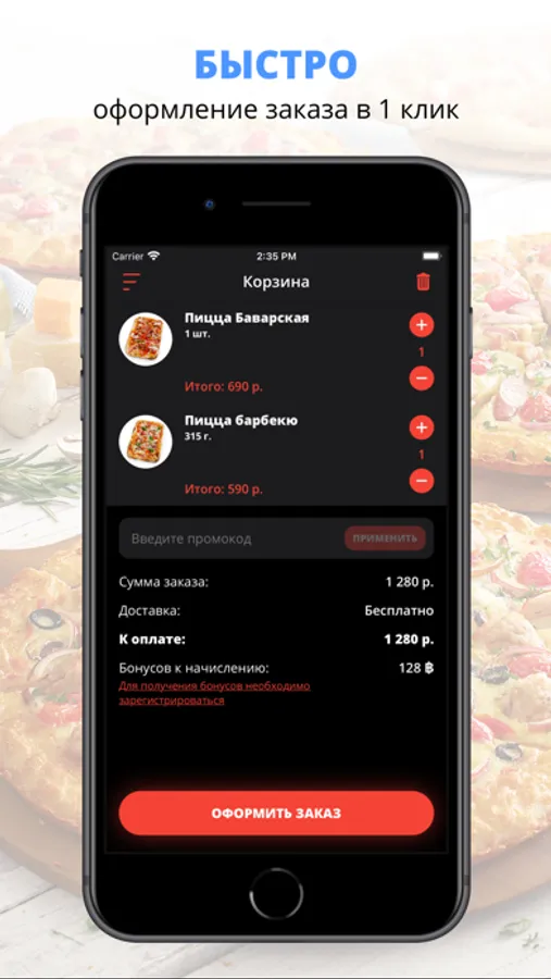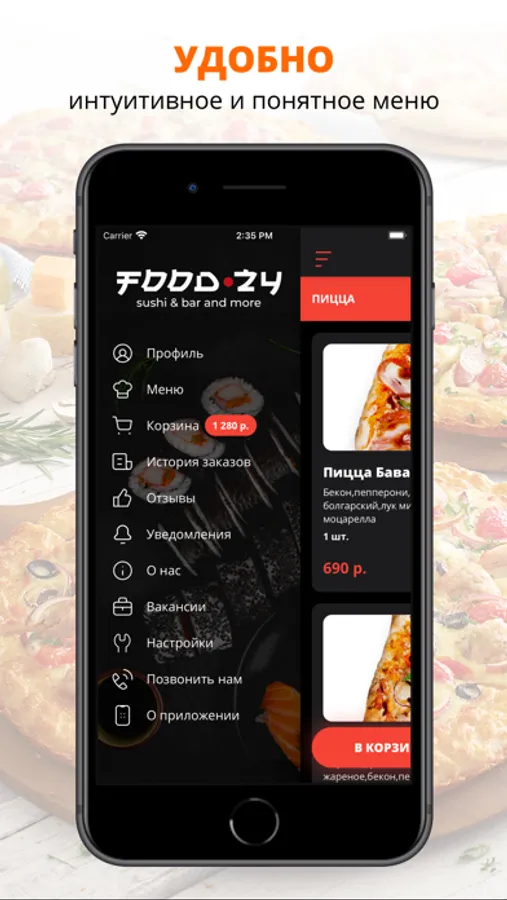 Скачивайте наше приложение, оформляйте заказ и наслаждайтесь любимой едой, где бы Вы ни были! Приятного аппетита!