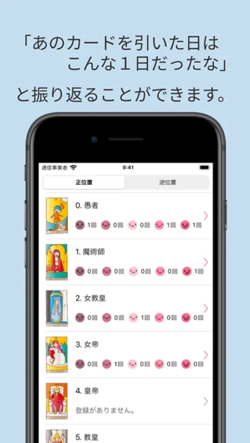 タロットカードを選択したら、このアプリにカードを記録しましょう。