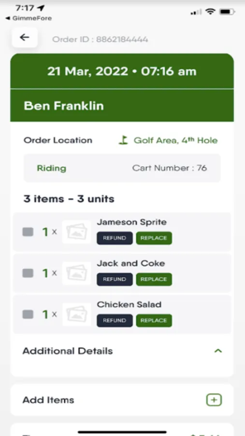 Gimme Fore was founded to enhance technology and customers’ experience at golf courses. With the GimmeFore Driver app, employees have a direct connection to customers’ orders anywhere throughout the property. The employees (the driver) utilize simple tools to accept, fulfill and deliver customer orders. As a driver, earn more than ever before! Easily monitor your profile, earnings, and schedule to actively be alerted of incoming orders during your shift.