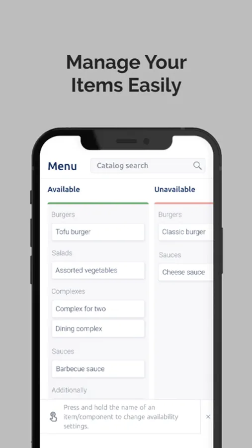 - fill menu catalogue to display actual present items ready for delivery;