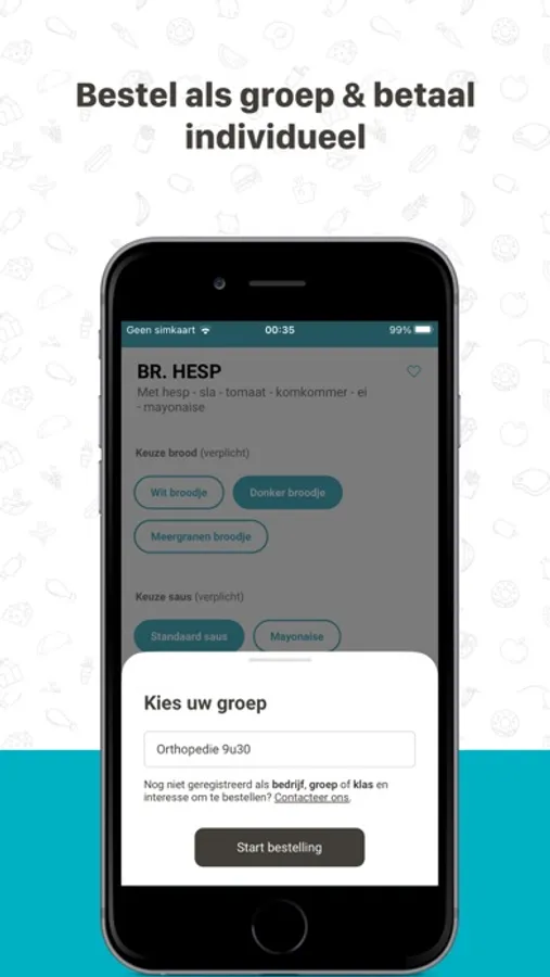 Laat je afdeling registreren als groep! Iedereen bestelt en betaalt individueel & wij zorgen ervoor dat alles samen klaar is op het afgesproken uur.