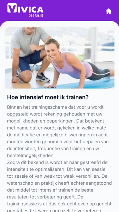 De Vivica app wordt u aangeboden door het ziekenhuis, huisarts, leefstijlloket, leefstijlcoach, personal trainer of andere uitvoerders. De app kan ter ondersteuning worden ingezet in verschillende zorgdomeinen als Oncologie, Cardiologie, Prehabilitatie en is beschikbaar voor deelnemers aan de gecombineerde Leefstijl interventie en andere programma’s gericht op preventie, overgewicht en diabetes.
