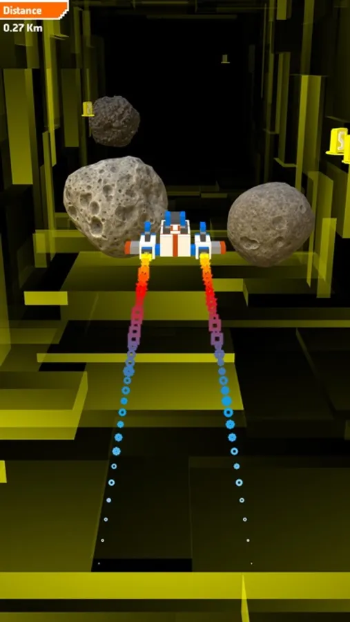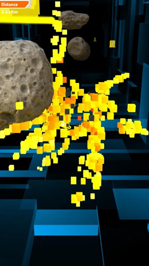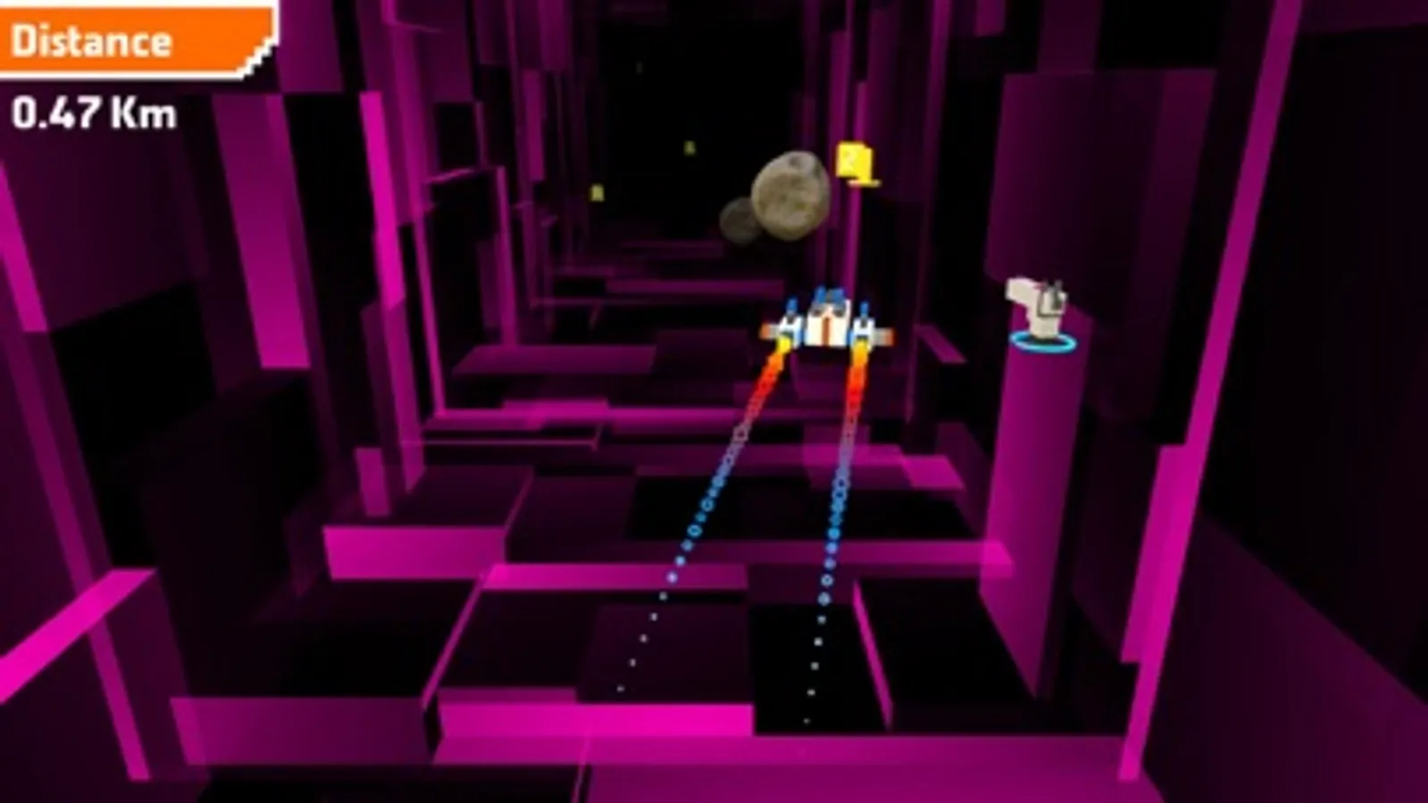 HoveRun represents the progress of a spaceship, moving through and trying to escape in a tunnel, among accelerating and condensing asteroids.