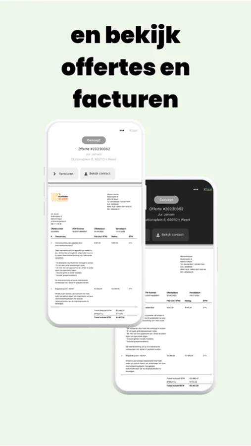 De Reuzenpanda App is voor het managen van al jouw offertes en facturen van Reuzenpanda. Zo kan je overal een overzicht krijgen over je behaalde omzet, het aantal offertes en het aantal akkoorden van een gegeven periode. Ook kun je specifiek elk document bekijken met de bijbehorende contactgegevens en eventuele acties uitvoeren zoals: het versturen, accepteren of annuleren.