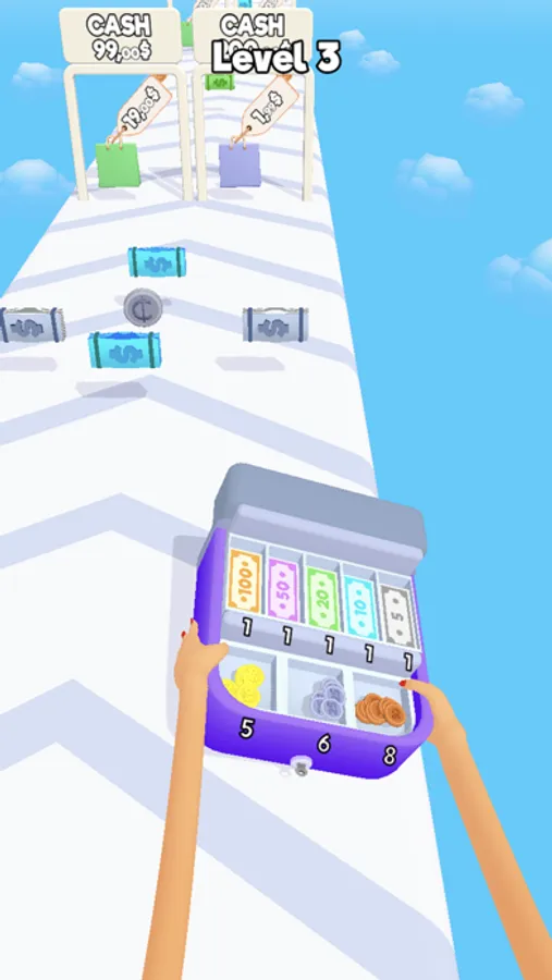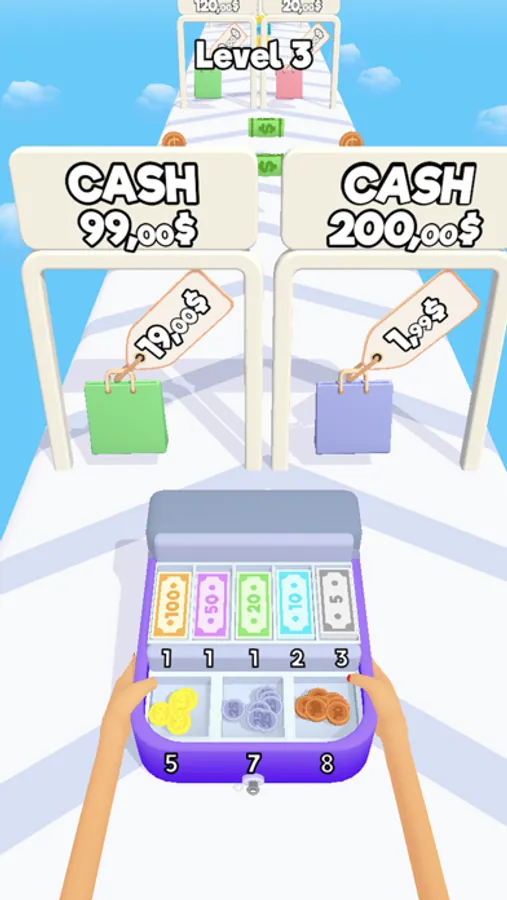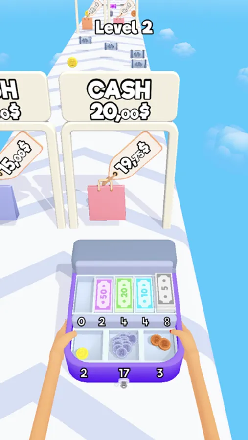 Customers waits in line. Do you have enough change to pay? Try to stack all types of money you can find in you cashier to meet the demands of your customers, one wrong decision may bankrupt you! Swerve to collect and hold to move to select your customer.