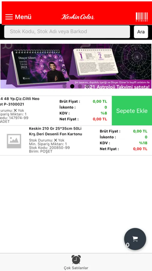 - Cihaz Kamerası ile Barkodu Taratarak Ürün Arama