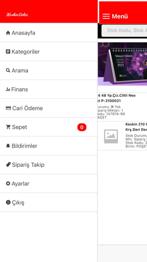 Keskin Color B2B Sisteminin Mobil Uygulaması.